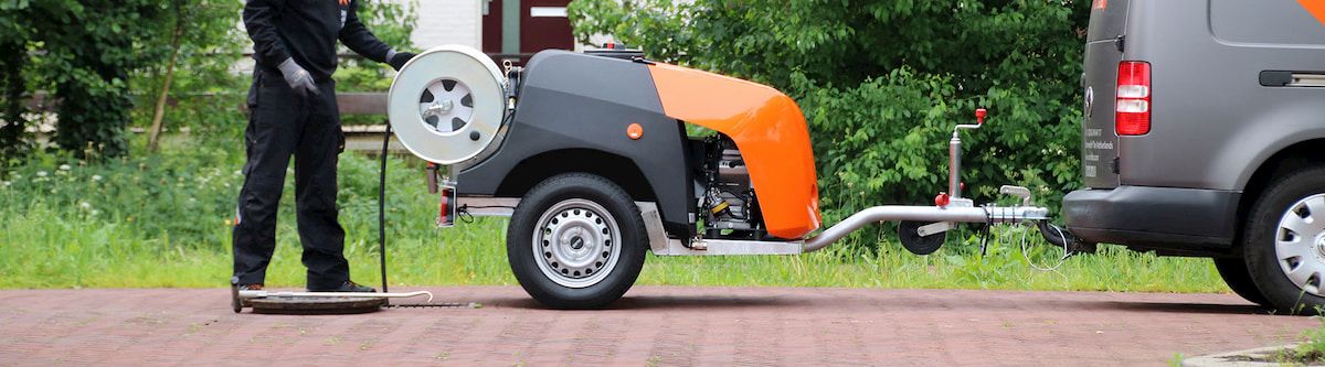 Hogedruk rioolreinigingsaanhanger voor het ontstoppen en reinigen van huisaansluitingen en het hoofdrioolstelsel tot Ø400mm. Deze rioolmachine, de ROM SmartTrailer PRO genaamd, is ook geschikt voor gevel-, oppervlakte- en drainagereiniging. Mag u rijden met rijbewijs BE.
